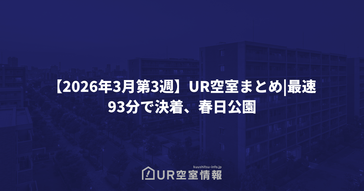 【2026年3月第3週】UR空室まとめ|最速93分で決着、春日公園