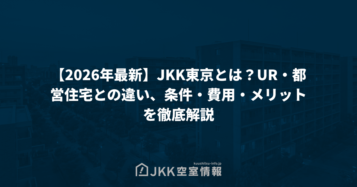 【2026年最新】JKK東京とは?UR・都営住宅との違い、条件・費用・メリットを徹底解説