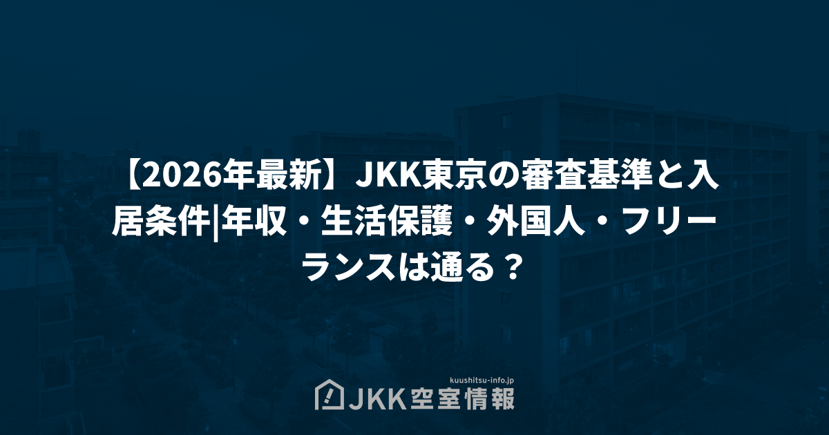 JKK東京(東京都住宅供給公社)の入居審査を徹底解説。月収基準早見表、年収別シミュレーション、収入が足りない場合の緩和措置、生活保護・外国人・フリーランス・無職の方の申し込み可否まで、気になる疑問をすべて解消します。